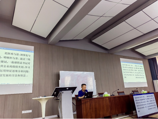 组织全体教职工召开政治理论学习会,专题传达学习习近平总书记来川视察重要指示精神。会议由学院党总支书记文洪毅主持。文洪毅指出,习近平总书记此次来川视察,对四川高质量发展提出殷切希望和重要要求,充分体现了总书记对四川的深切关怀、对四川人民的牵挂厚爱。学院立足西部,致力于“融汇中外管理智慧,培养具有创新创业精神和社会责任感的企业家与行业精英,推动西部经济发展和社会进步”,我们要切实把思想和行动统一到习近平总书记来川视察重要指示精神和省第十二次党代会决策部署上来,继续奋力谱写学院新时代新征程高质量发展新篇章,以实际行动迎接党的二十大胜利召开。会上,全体教职工观看了系列学习视频:《习近平在四川考察时强调 深入贯彻新发展理念主动融入新发展格局 在新的征程上奋力谱写四川发展新篇章》、《习近平在中共中央政治局第三十九次集体学习时强调 把中国文明历史研究引向深入 推动增强历史自觉坚定文化自信》和《苏东坡传》;随后由文洪毅全文领学了人民网文章《三组词,读懂总书记走进一家民企的深意》,以期让全体教职工结合学院中心工作更好地领悟习近平总书记来川视察重要指示精神。会议还传达和安排了其他事项。按照学校疫情防控要求,与会人员佩戴口罩并间隔就坐。