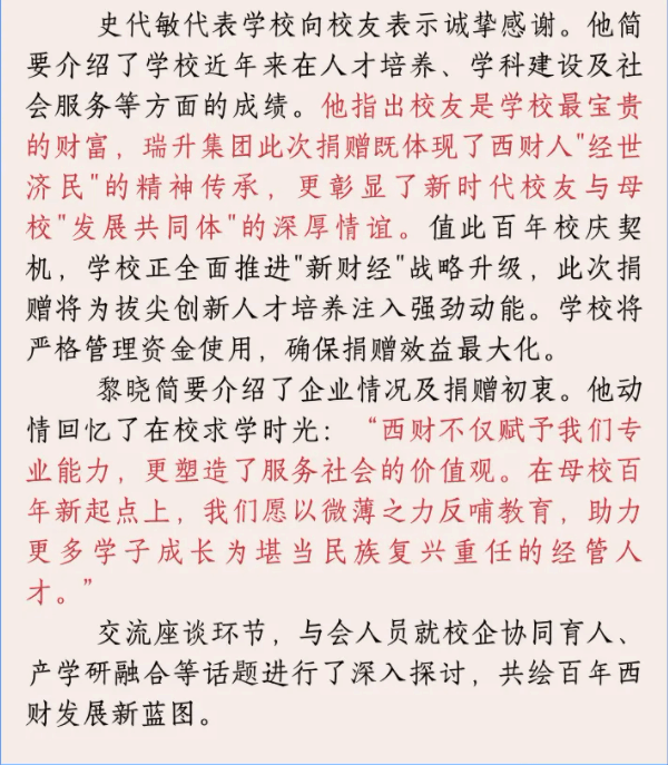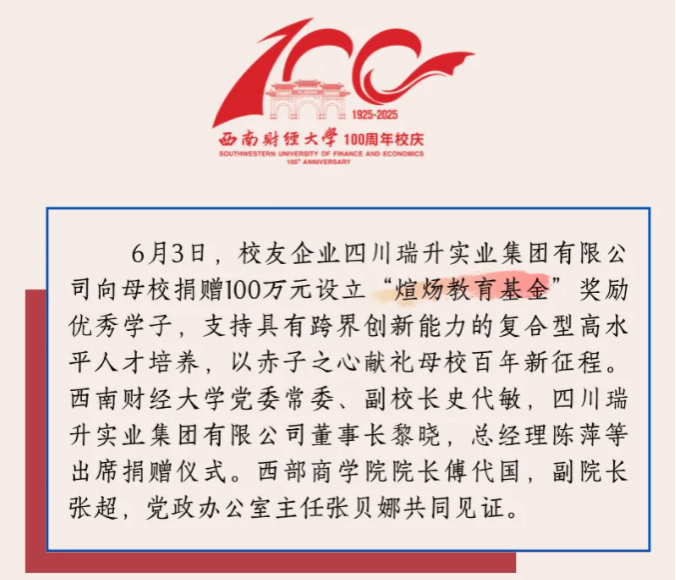 情系母校百年路 共启育人新征程—瑞升集团捐赠100万元支持H韩漫 发展