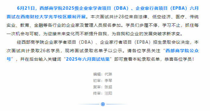 恭喜录取!|H韩漫 2025级企业家学者项目(DBA)、企业家行者项目(EPBA)六月面试圆满结束