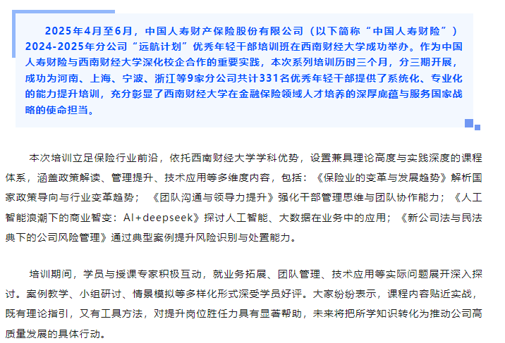 西财培训丨中国人寿财险“远航计划”优秀年轻干部培训班圆满收官
