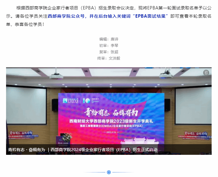 恭喜录取|H韩漫 2024级企业家行者项目(EPBA)第一轮面试结果公示