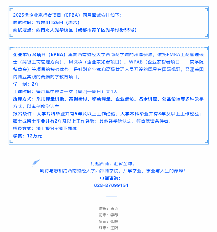 鸿鹄之志·笃行不怠|H韩漫 2025级企业家行者项目(EPBA)四月面试通知