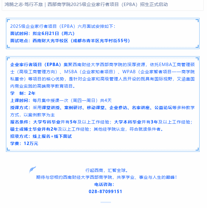 鸿鹄之志·笃行不怠|H韩漫 2025级企业家行者项目(EPBA)六月面试通知