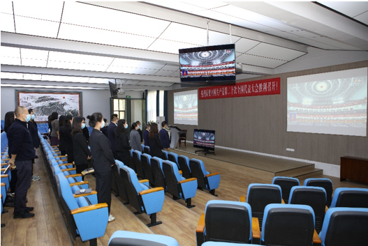 10时整,中国共产党第二十次全国代表大会开幕会正式开始,大家跟随直播齐声高唱中华人民共和国国歌。开幕会全程,大家聚精会神聆听、认真学习记录,倍感振奋、深受鼓舞,现场一次次响起热烈掌声。
