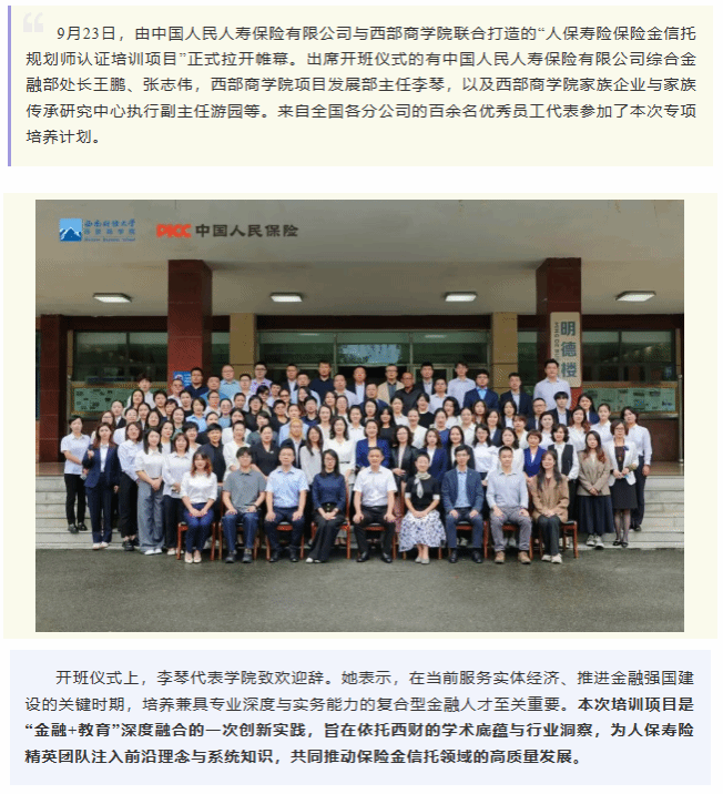 金融强国,人才支撑|人保寿险携手H韩漫 启动保险金信托规划师认证培训项目