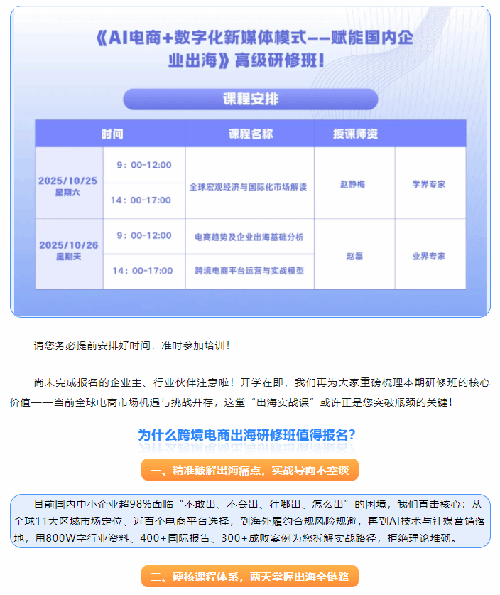 【重要通知】跨境电商出海研修班开学时间定了!
